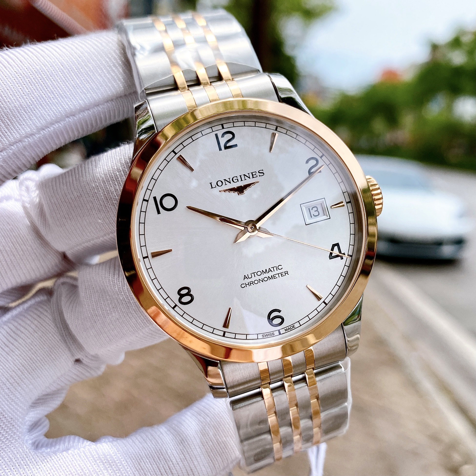 – Mặt trắng cọc số la mã cổ điển, Vàng đúc full nguyên khối 18k